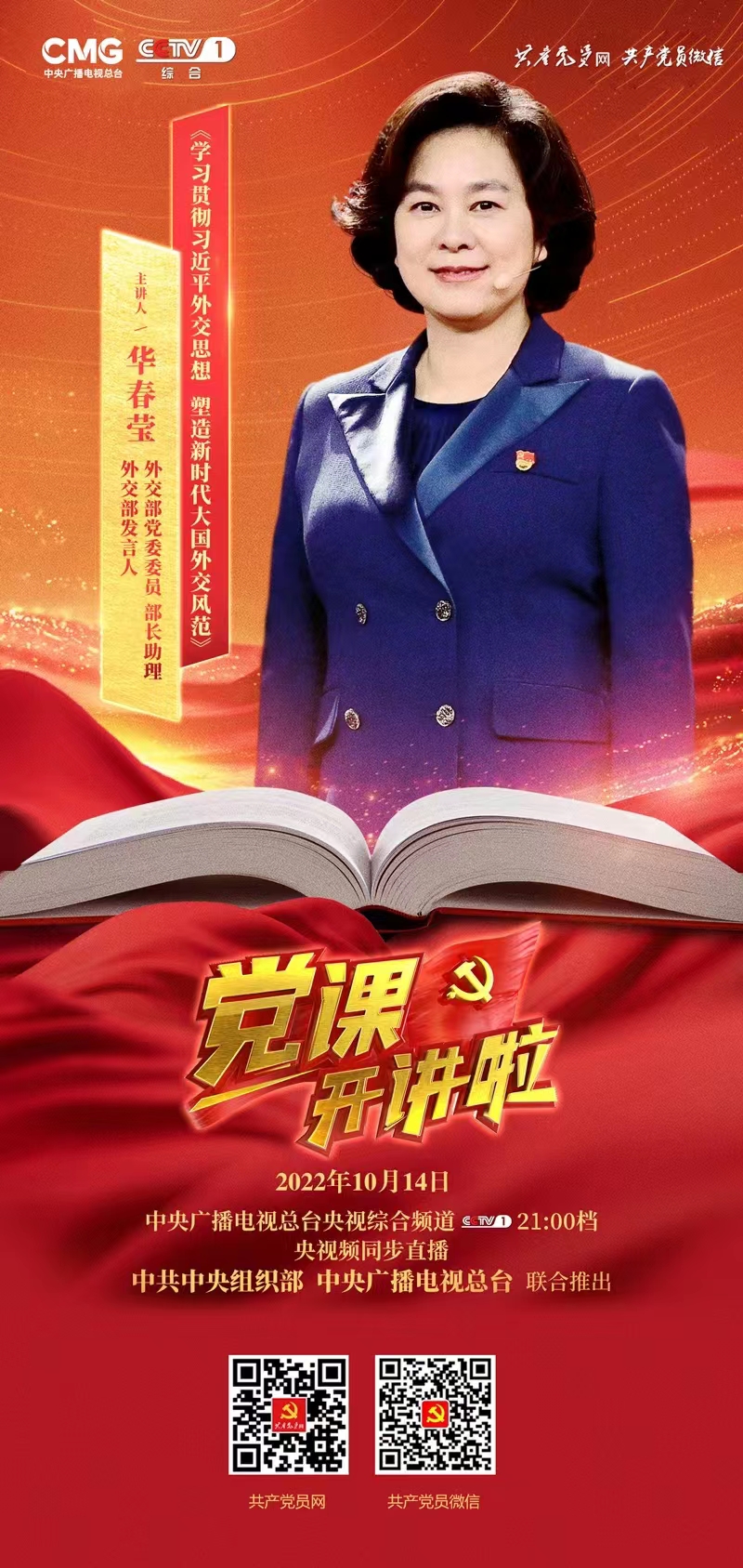 2022年10月14日,91论坛 党委组织全体教师观看了《党课开讲啦》特别节目,这期节目是由中共中央组织部和中央广播电视总台联合推出的,邀请了外交部发言人华春莹担任主讲人。以习近平外交思想为主题,从“回答时代之问,彰显思想伟力”“植根人民情怀,心系天下大同”和“精彩冬奥外交,尽显大国风范”三个方面,梳理并展现了新时代中国特色大国外交的风范。如何向世界表达中国对一系列国际问题的看法,阐述中国的立场、观点和态度,捍卫国家的核心利益,逻辑严谨,恰到好处,不卑不亢,着实不易。中国如何在世界的舞台上展现出真理的力量和历史的担当,需要我们每一个人的努力,也需要我们每一个人在合适的场合正确和恰当地表达。提升中国的国际形象,让世界了解我们“守正创新、立己达人、开放包容和重情尚义”的大国外交风范。