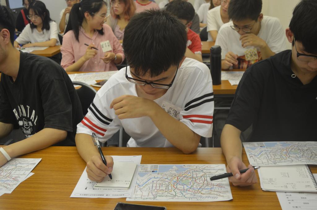 第一次课堂学习看懂东京地铁图示。东外学院的老师们竭尽温柔,她们手把手地教,同学们逐个认真地学。同学们都表示,一定要抓住时机,多练日语,多了解日本文化,让这一个月收获满满!