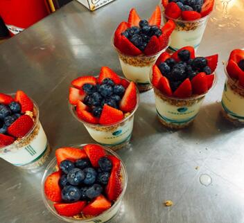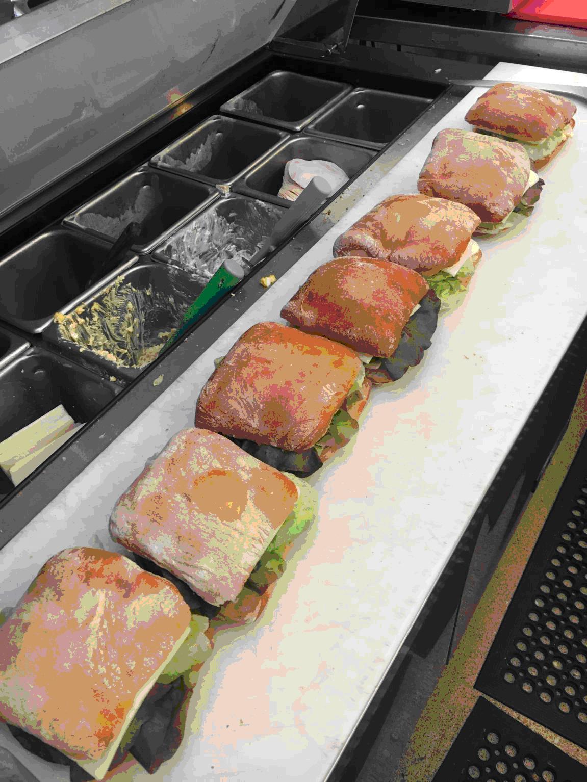 这是我在厨房做的三明治和酸奶水果,这个夏天很忙,有时候一天我要做上百个三明治,上百个热狗,比起收银,我倒是更喜欢在厨房里做东西。好几次我被toast的机器烫伤了,到现在印子还在呢。同事们也很照顾我,有什么不懂的或者有难处的,他们都会帮助我。好几个同事都是墨西哥人,他们之间都讲西班牙语,我呢,也学了几个简单的西班牙语,的确是一个多文化的地方,闲暇的时候我就让同事们教我学学西班牙语,我也教教他们简单的中文,还别说,语言真是奇妙而有趣的东西。 |