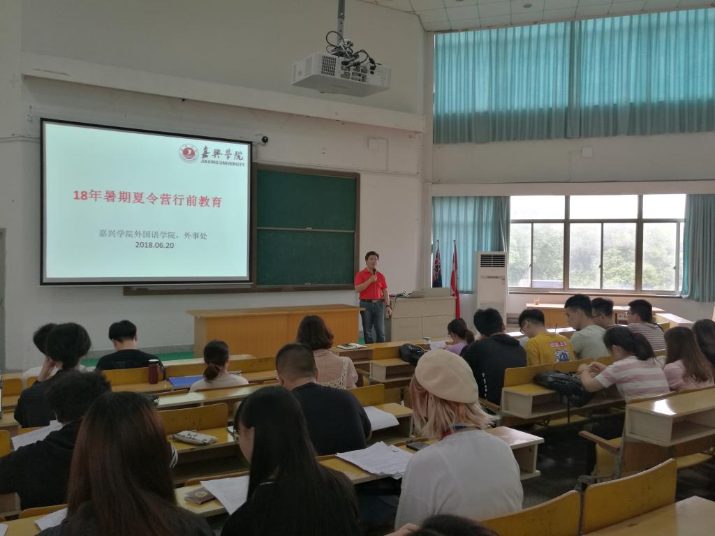 嘉兴学院暑期赴日夏令营活动,迄今举办了两次,共74名学生参加,今年是第三次,有来自91论坛 、南湖学院人文系日语教研室、平湖校区应用技术学院日语系以及其他学院各专业的学生共39名同学参加。鉴于此,为了保证此次活动顺利实施,举办行前教育十分必要。一个月后,39名同学将赴日实习一个月,我们真诚希望嘉兴学院第三次暑期赴日本东京夏令营活动的同学们收获满满,安全归来。
