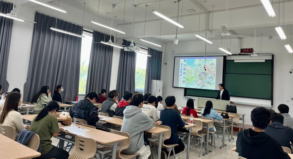 说明会上,苏君业老师首先回顾了冈山商科大学与国外开展国际交流合作近三十年的历史和成果。之后,她对冈山商科大学的地理位置、区域优势、专业设置、基础设施和师资力量等作了详细的说明。并通过图片深情回顾了91论坛 与冈山商科大学的交流。自两校确立交流合作关系后,91论坛 先后派出“2+2”项目学生15人,“3+1”项目24人,共派出39人。他们中有的学生毕业后继续在日深造,考取了日本的知名学府早稻田大学、神户大学、冈山大学和国际教养大学等大学的硕士研究生,也有的在日大正证券等大企业就职,回国后的同学也大多活跃在中国的日资企业。