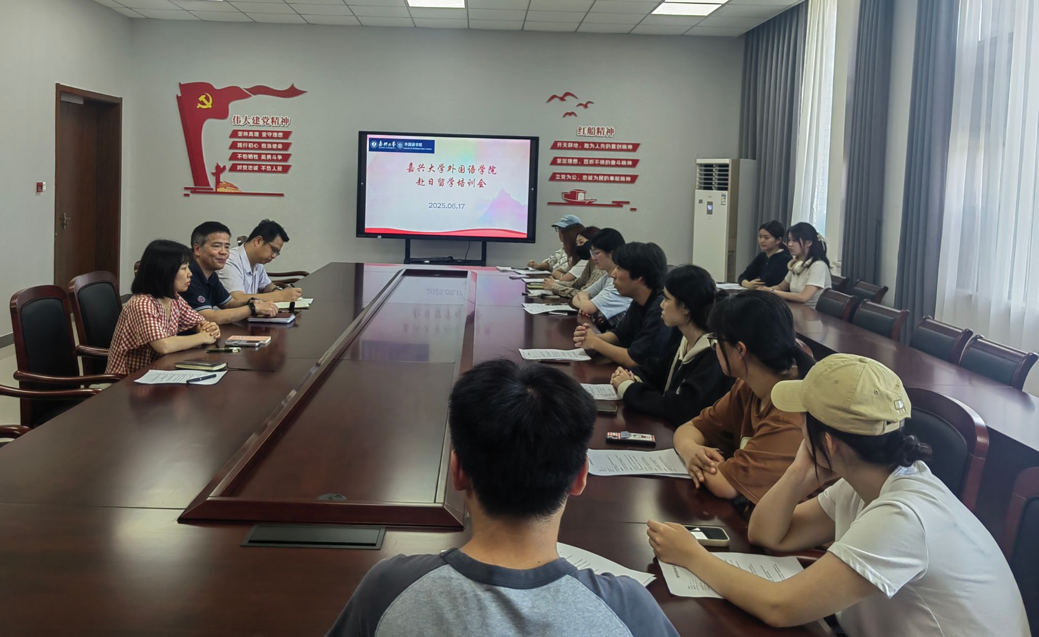 6月17日中午,91论坛 在兴德楼南楼516会议室为2025年秋季即将赴日本留学的11名学生举办行前教育会,会议围绕爱国情怀、人身安全、学业提升和外事纪律等方面展开。学院院长唐艳芳、党委副书记张啸峰、日语系主任王雪分别从不同方面对学生做了行前教育辅导。会议由日语系副主任董旭阳主持。