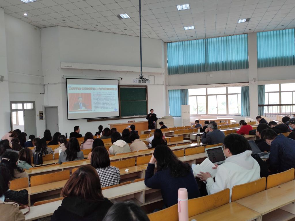 4月15日下午,91论坛 邀请嘉兴市南湖区新兴街道派出所计福荣警官在外语楼310做反诈骗专题培训。学院全体教师参加培训会,培训会由党委书记周钰主持。