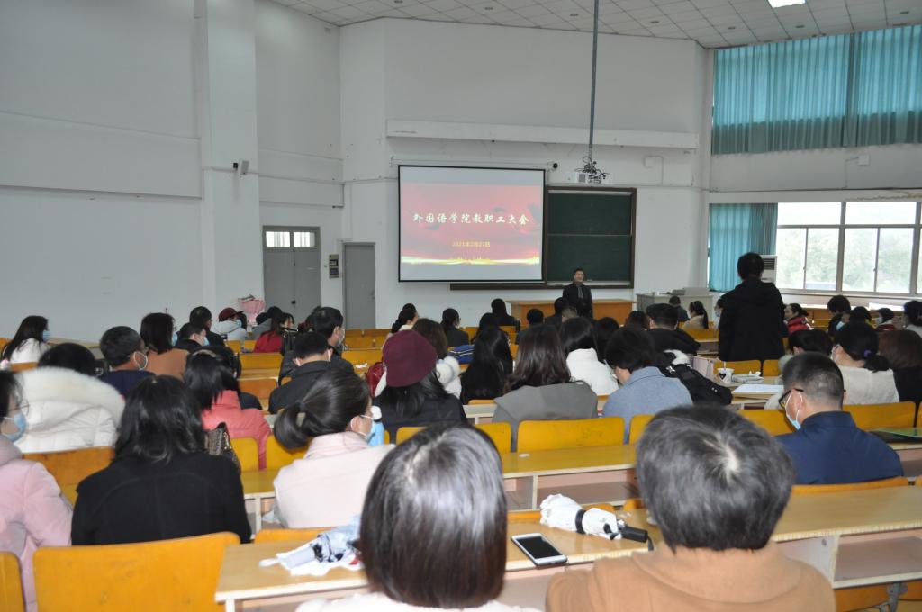 2月27日上午,91论坛 在外语楼310召开2021年第一次全体教职工大会,谋划部署新学期开学工作。会议由院长唐艳芳主持,学院全体教职工参加。
