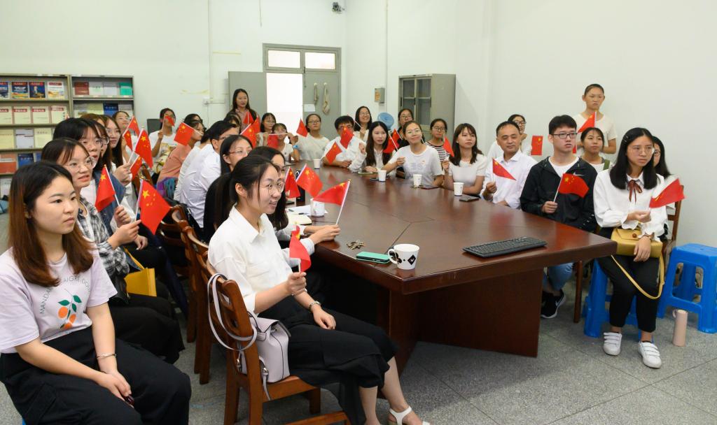 英语专业新生孙颖、余迪等用一句话道出了师生们共同的心声:“祝伟大的祖国母亲生日快乐,愿您永远繁荣昌盛、国富民强!”集中观看国庆直播活动在师生们的“祖国万岁,中华人民共和国万岁”的欢呼声中结束。