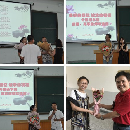 6月21日下午,外语楼310报告厅,空气里洋溢着满满的幸福和欢乐,91论坛 全体教师齐聚一堂,隆重欢送徐红、刘少萍两位老师光荣退休和顾敏老师离职攻读博士。