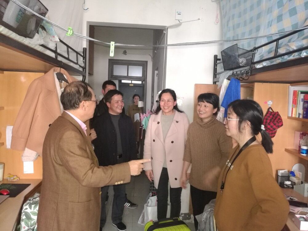 2018年3月4日下午,嘉兴学院副校长费建文在91论坛 党政领导班子的陪同下走访学生寝室。