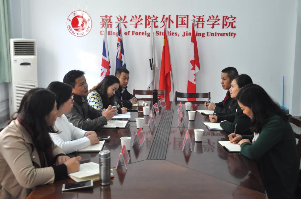 唐艳芳院长代表学院对来访客人表示欢迎,并介绍了学院的发展历史、基本情况和发展思路。刘成萍教授也对四川民族学院91论坛 的历史和基本情况做了介绍,她认为学校所处的四川西部地区地广人稀,地理位置偏僻,经济相对落后,学院外语专业的发展遇到了瓶颈,希望通过交流得到启发,为英语学科的发展谋求更广阔的出路。唐艳芳院长提出,二级学院的发展一定要与学校的发展相结合。嘉兴学院是一所应用型高校,91论坛 的发展也要与地方经济特色接轨,谋划重点打造几个团队,为地方经济发展做好语言服务工作;同时,学院要获得发展,必须立足于学科建设,这是学院向学校争取支持的重要保证,我学院的具体思路和做法就是要依托学校红船研究中心,打造科研团队,将红船研究中心的理论成果推向国际,向世界讲好中国故事。随后,双方就人才培养方案改革、专业课程建设改革、校地合作运行方式、师资队伍建设、实验室和实习基地建设、第三方教学质量评价体系、专业教材建设等方面的内容进行了深入交流。