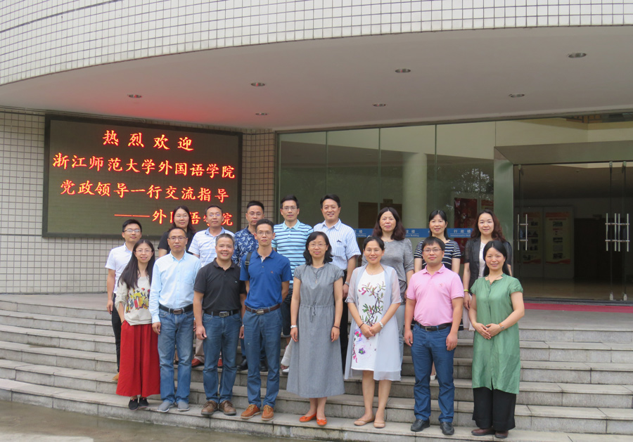 2017年6月26-27日,浙江师范大学91论坛 党委书记俞明祥、院长洪明、党委副书记林凌斌、副院长胡美馨、日语系主任徐微洁、翻译系主任李建军、大外部主任骆巧丽、教务办主任颜文钦、院办主任郑基一行9人来我院考察交流。