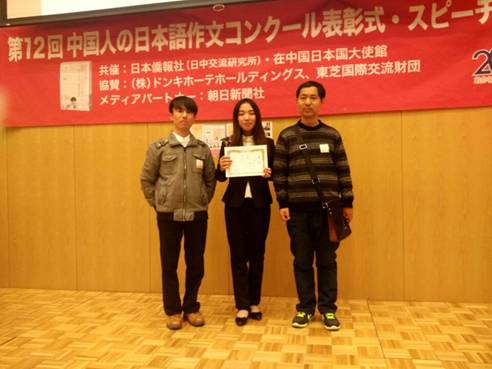 在2014年和2015年第10届和第11届的“中国人日语作文大赛”中,我们日语系学生曾分获一个三等奖。今年,我们一次性获得了两个三等奖,并继续将“优秀指导教师奖”和“园丁奖”收入囊中。这是一个历史性的突破,足以说明我们日语专业的学科竞赛在稳步提升。