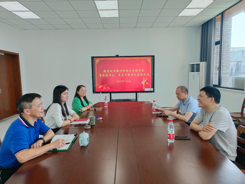 7月1日下午,衢州学院91论坛 党委书记葛林波、党委副书记吴志宁来学院考察交流。学院党委书记周钰、院长唐艳芳、党委副书记朱莹出席交流会。