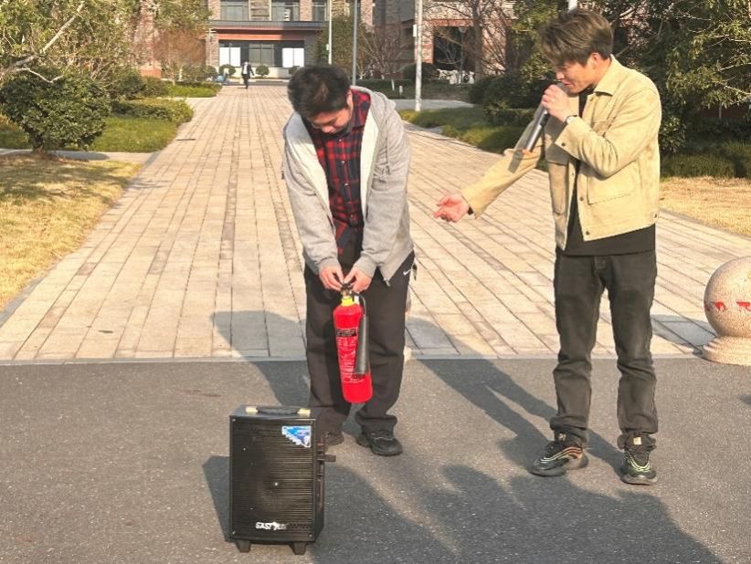保卫处消防科管理科丁伟老师对此次师生逃生演练过程进行点评,指出全体师生以最快的速度全部撤离到安全地带,说明此次火灾逃生演练活动举办得很成功,并在现场进行消防知识和逃生技能培训,对现场示范灭火器等消防器材的正确使用。