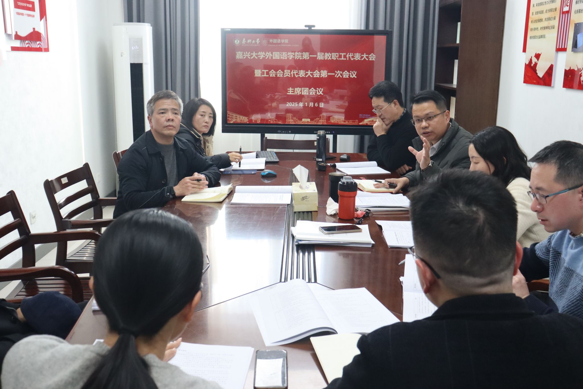 2025年1月6日,91论坛 第一届教职工代表大会暨工会会员代表大会第一次会议召开。学院党政班子成员、教职工代表参加大会,大会由党委副书记张啸峰主持。