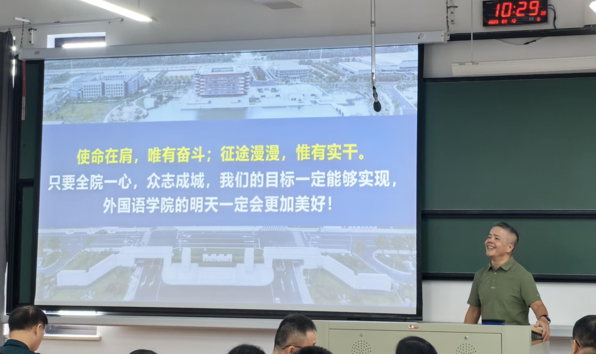 党委书记刘巧芝传达学校2025年暑期中层干部(扩大)读书会会议精神,强调要提高站位,凝聚共识,深刻领会人才强校的重大意义,全面落实“人才强校”首位战略,抓好“教师、干部、职员”三支队伍建设,全面激发学院人才活力,推动学院高质量发展迈向新台阶。随后,刘巧芝面向全体教职工上了“开学第一课”,要求全体教职工严格落实意识形态工作责任制,以高度的政治自觉、思想自觉和行动自觉,共同维护好学院意识形态安全;要积极弘扬教育家精神,全面落实立德树人根本任务,涵育高尚师德师风,切实提高教书育人本领,为培养担当民族复兴大任的时代新人贡献力量。