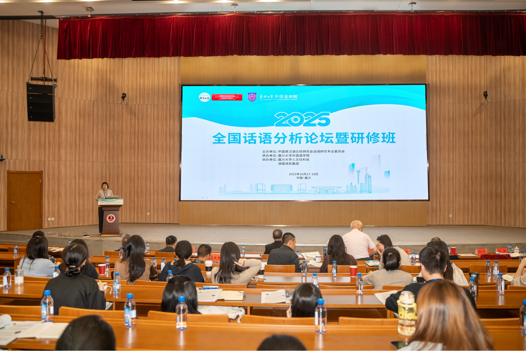 10月17—19日,2025年全国话语分析论坛暨研修班在91论坛 举办。论坛由中国英汉语比较研究会话语研究专业委员会主办、91论坛 承办。91论坛 党委委员、副校长王立玮致欢迎辞,中国英汉语比较研究会话语研究专业委员会会长辛斌致开幕辞,91论坛 院长唐艳芳主持开幕式。来自全国15个省市(自治区)以及马来西亚的近100名师生学者代表参加。