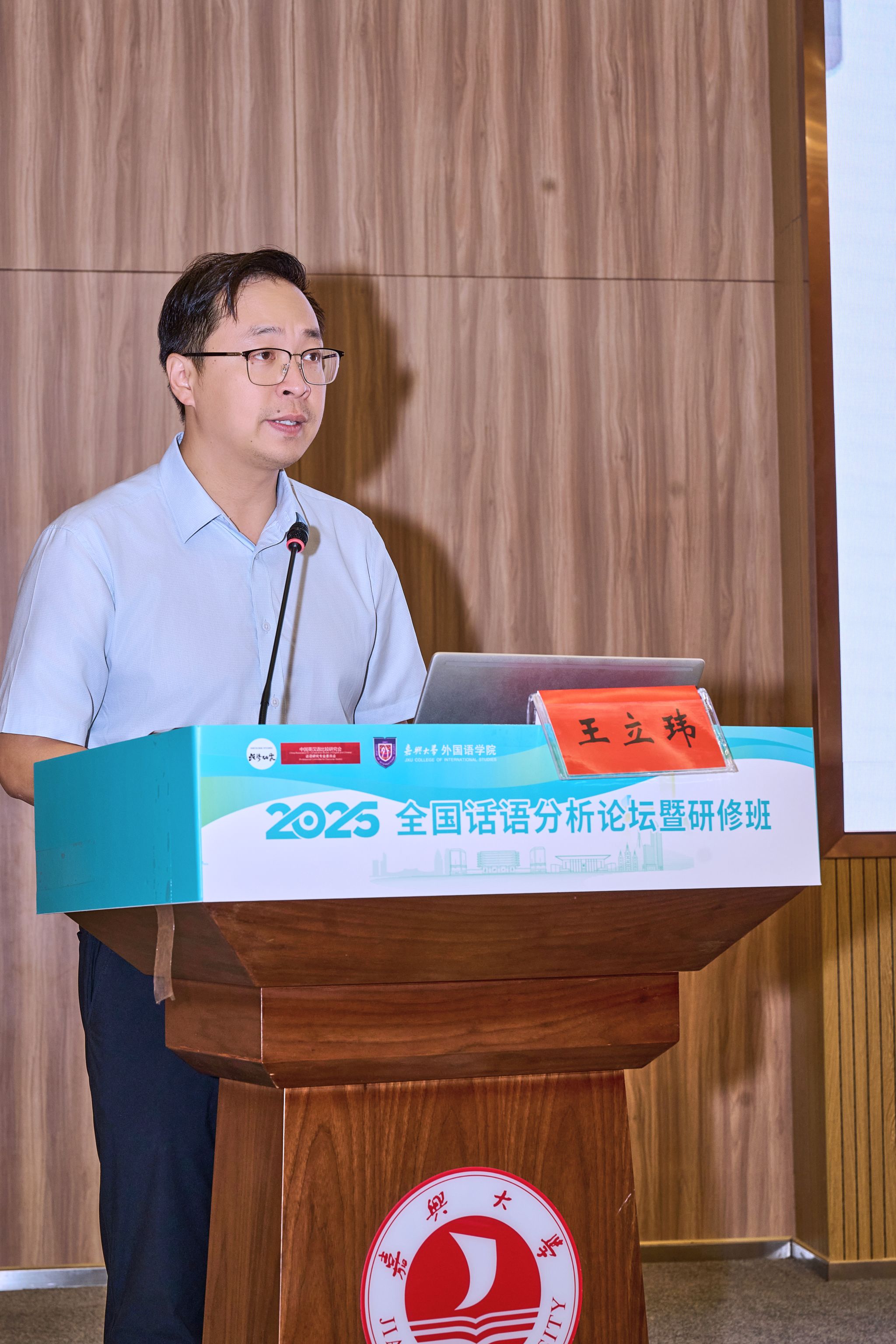 王立玮在致辞中表示,在全球化与数字化深度融合的今天,话语分析在语言研究、外交沟通、跨文化传播、人工智能交互、教育实践等领域的应用愈发广泛,对于推动社会进步、促进文化交流与传播具有重要意义。本次学术论坛的举办不仅是一次学术思想的碰撞与交流,更是一场推动话语分析研究发展、服务国家文化传播战略的重要实践。希望通过各位专家学者的深入交流与探讨,碰撞出更多智慧火花,为我国话语分析研究的创新发展注入新的活力,为培养更多高素质人才、服务国家战略需求贡献更多智慧和力量。