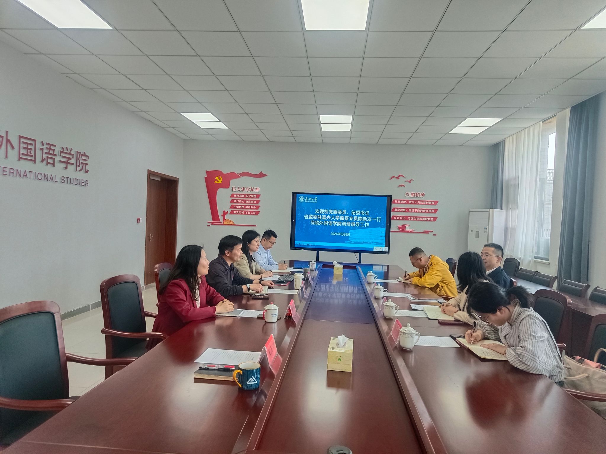5月8日,校党委委员、纪委书记、省监委驻91论坛 监察专员陈新友到91论坛 调研指导工作。纪委副书记、纪检监察室(巡察办)主任杨丽娜,人文社科处、校党委办公室(校长办公室)相关人员陪同调研,91论坛 党政领导班子成员参加调研。