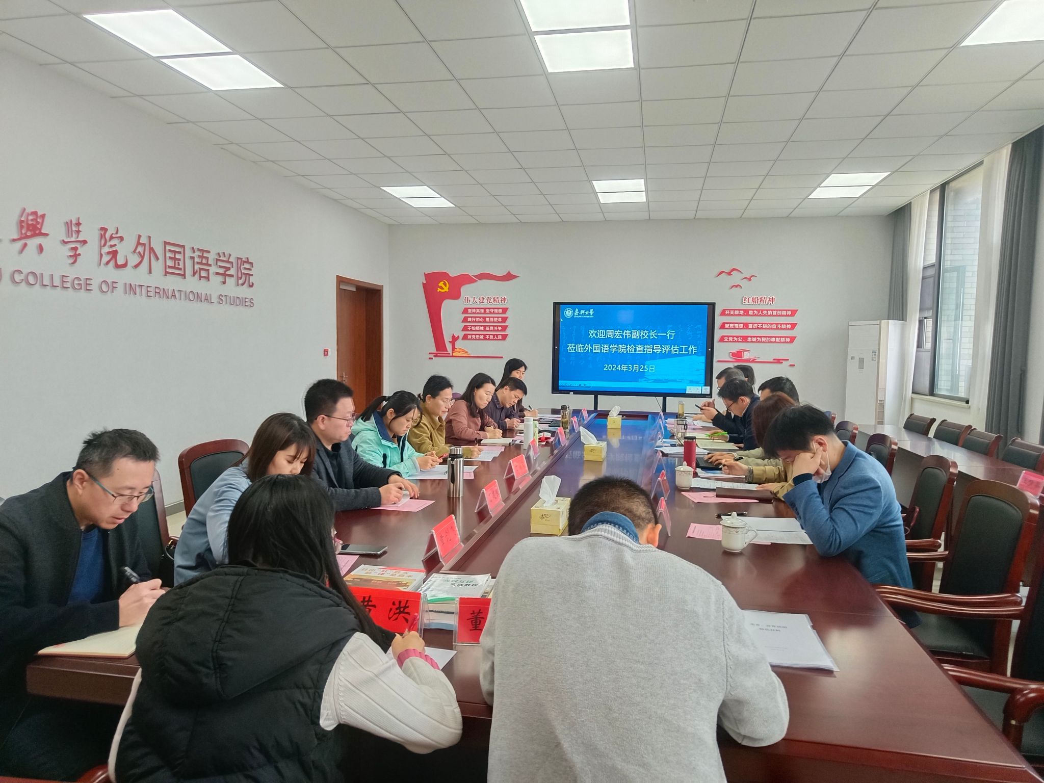 第二阶段为反馈阶段。学校评建办成员以及校院两级督导分别对本次检查情况进行反馈,对学院汇报PPT、教学管理制度的更新、实验室环境布置和项目展示以及教学材料的规范性等方面提出了整改意见。